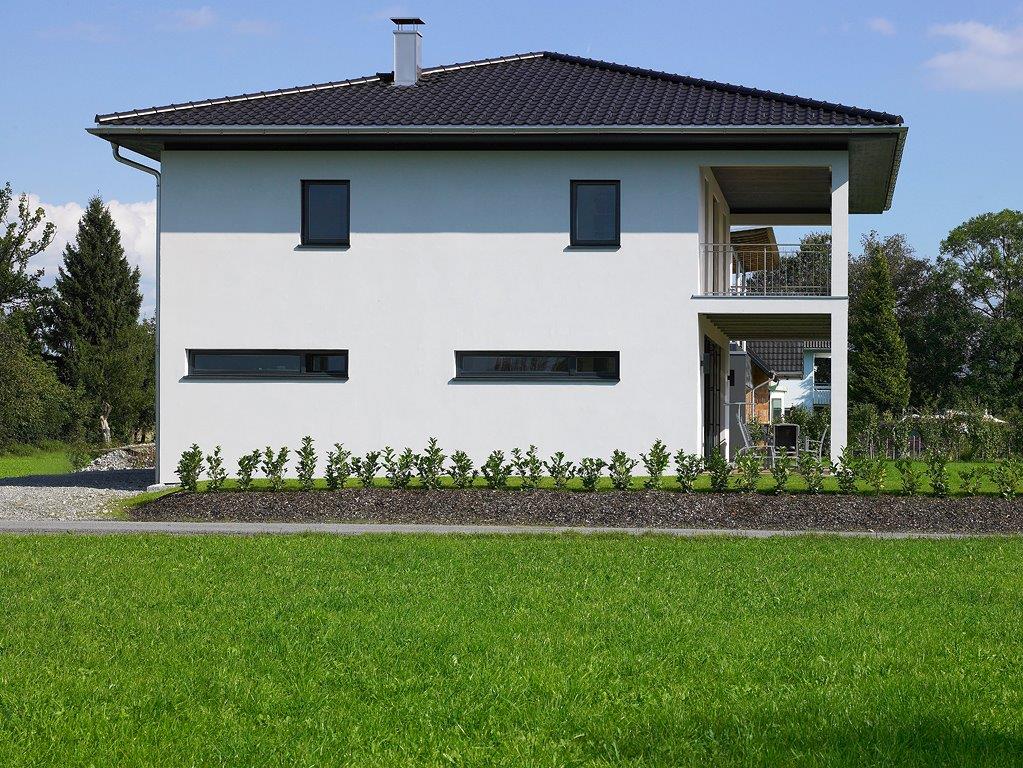 EinfamilienhausHöchst 1 Informationen rund um dieses Projekt Bauweise: KG Beton, EG/OG Holzständerkonstruktion Wohnfläche: 154 m² Fassade: Putz Heiztechnik: Gas Bauzeit: 8 Monate Planung: Architektur Jürgen Hagspiel zurück