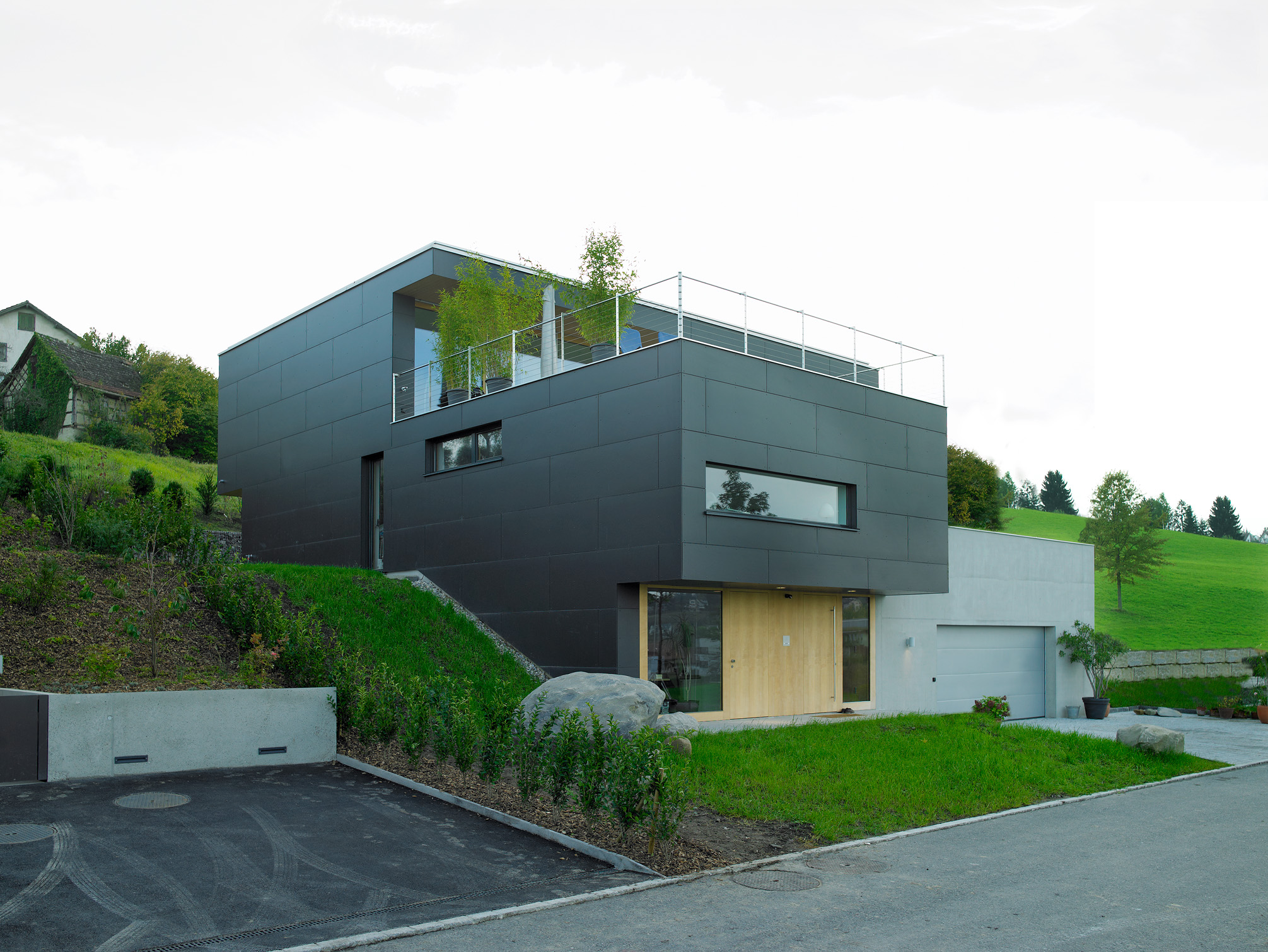 - Fassade: Eternitplatten, Weisstannentäfer
